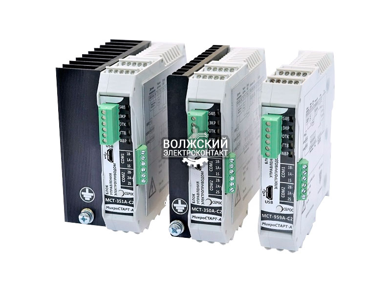 Интеллектуальные блоки управления электроприводом МСТ-350А серии «МикроСТАРТ-А» - это компактные реверсивные полупроводниковые пускатели с дополнительными дискретными входами для концевых и моментных выключателей, аналоговым входом для датчика положения, опционально входом PTC-термодатчика (опция -СК, -С2) либо аналоговым входом позиционера (опция -АСК, -АС2), а также опционально одним или 2-мя сетевыми интерфейсами RS-485, предназначенные для дискретного или сетевого управления электроприводами с трехфазными ЭД с напряжением питания 3x380В или с однофазными ЭД с напряжением 1х220В. Основное функциональное применение - электроприводы запорной и регулирующей арматуры.