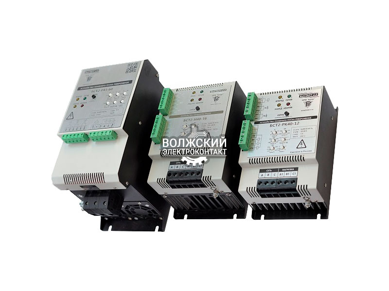 Устройства плавного пуска БСТ2-Н2 серии «БиСТАРТ 2.0» - это полупроводниковые (тиристорные) пускатели, предназначенные для плавного пуска и останова электродвигателей без функций защитного отключения (функции защитного отключения обеспечивают модели БСТ2-Н4).Полупроводниковая коммутация обеспечивает высокий ресурс включений при частых коммутациях, отсутствие искрения и механического износа, минимальный уровень коммутационных помех. Тиристоры пускателей имеют необходимый запас для коммутации высоких пусковых токов электродвигателя.Диапазон мощностей подключаемых электродвигателей от 0,04 до 30 кВт.