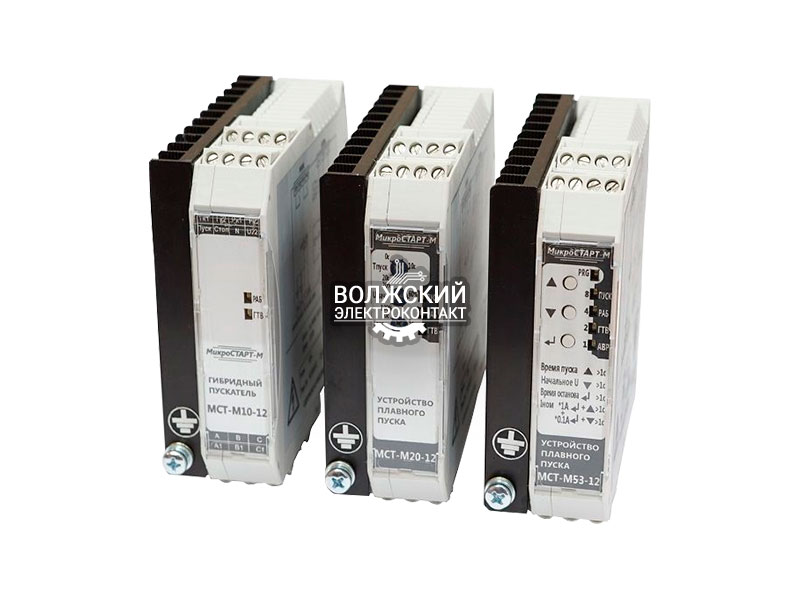 Устройства плавного пуска МСТ-М0 серии «МикроСТАРТ-М» - это компактные полупроводниковые пускатели с функциями плавного пуска и останова однофазных электродвигателей.Пускатели «МикроСТАРТ-М» используют комбинацию полупроводниковых элементов и силовых электромеханических реле. Коммутация электродвигателя осуществляется через полупроводниковые элементы, а силовые реле используются при постоянной работе для снижения тепловыделения.Диапазон мощностей подключаемых 1-фазных электродвигателей от 0,04 до 2,2 кВт.