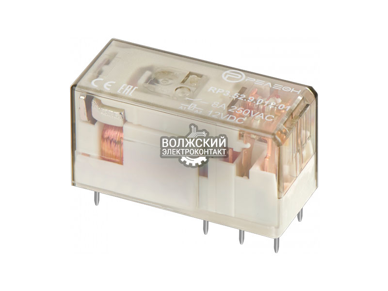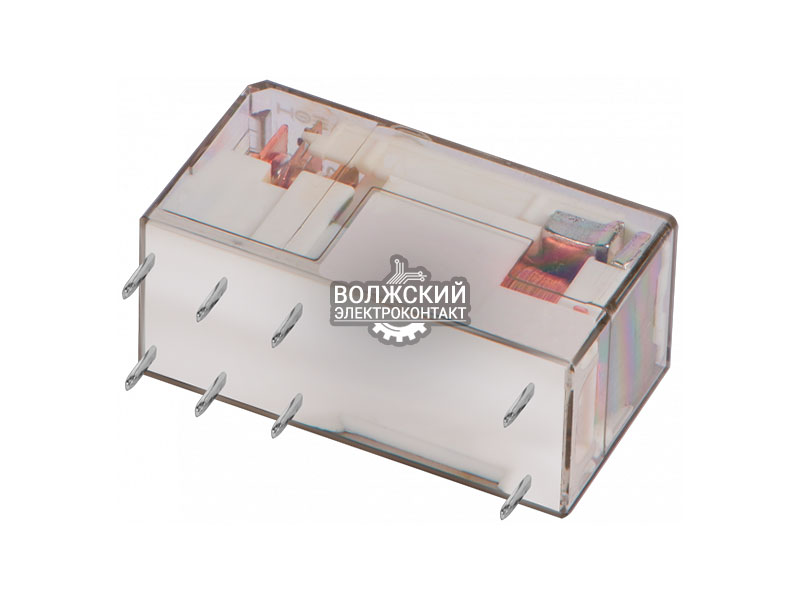 Низкопрофильное реле, 2 перекидных контакта 8А (12В DC) - прозрачный корпус