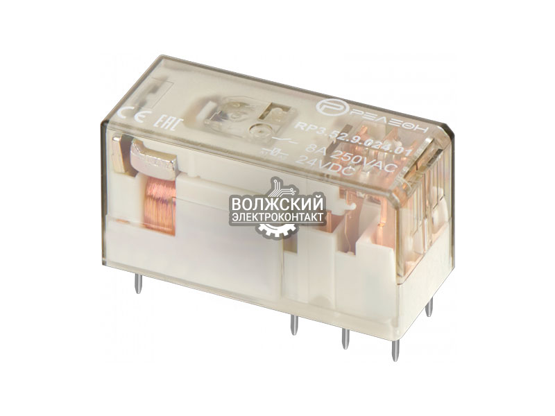Низкопрофильное реле, 2 перекидных контакта 8А (24В DC) - герметичное, прозрачный корпус
