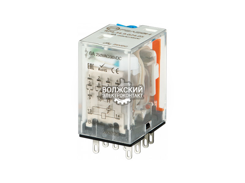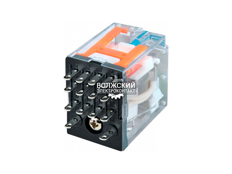 Промежуточное реле, 4 перекидных контакта 6А (6В DC) блокируемая кнопка проверки, светодиод