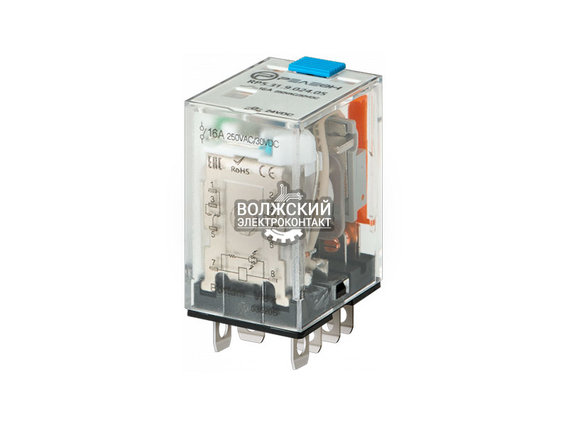 Миниатюрное силовое реле, 1 перекидной контакт 16А (6В DC) блокируемая кнопка проверки, светодиод