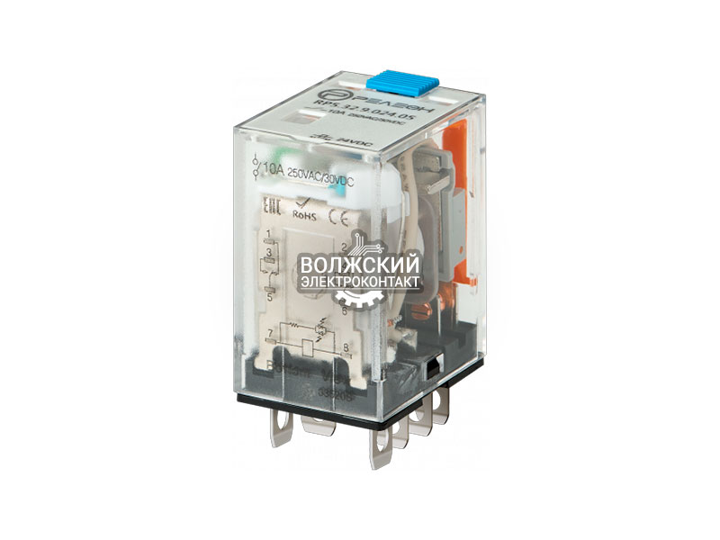 Миниатюрное силовое реле, 2 перекидных контакта 10А (220В DC) блокируемая кнопка проверки, светодиод