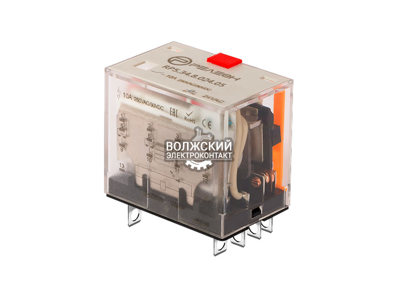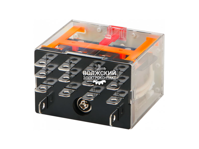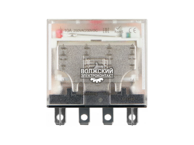 Миниатюрное силовое реле, 4 перекидных контакта 10А ( 380В AC) блокируемая кнопка проверки, светодиод
